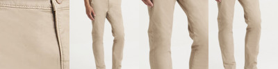 Slim fit chino made from stretch fabric for ease of movement. Featuring zip fly with button fastening at waist, belt loops, front slant pockets and button jet pockets at rear. Back jet pockets.