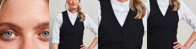 100% polyester. Easy care fabric. Fully lined. Four button contemporary style. Two functional watch pockets. Satin back. Back adjusters.