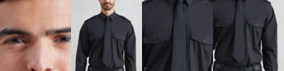 65% polyester/35% cotton poplin. Easy care fabric. Stiffened collar. Epaulette tabs. Two chest pockets with button down flaps. Combined pen pocket on left chest pocket. Back yoke. Two button adjustable cuffs. Straight hem. Epaulettes available - PR715. Available in short sleeve, PR212. Tie available - PR700 and PR710.