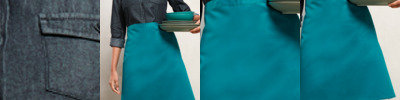Mid-length denim waist apron with two large metal eyelets that secure the waist ties. Large centre pocket measuring 36cm wide with combined pen pocket. Contrast trim on pocket and ties gives a two-tone denim effect. 50cm long by 70cm wide.