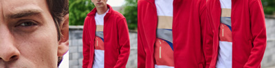 9 oz./yd² / 300 gsm, 96% polyester, 4% spandex bonded with brushed tricot with inner membrane ; 3,000 mm waterproof rating; 1,000 g breathability rating; Center front dyed-to-match reverse coil zipper; Semi-autolock rubber pull tab and chin guard; Zippered front welt pockets; Open hem cuffs; Double-needle stitching at hem and cuffs;