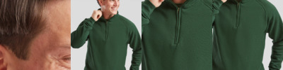 80% cotton/20% polyester. Raglan sleeves. Covered zip. Taped neck. Cotton/Lycra® ribbed cuffs and hem. Twin needle stitching. Cut out label.