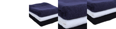 Bath towel with 12cm herringbone border for easy decoration. Hanging loop in centre of top edge.
