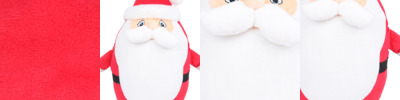 100% polyester. Soft plush father christmas. Sewn eyes. Contrast belt and feet. White coloured panel on tummy. Removable inner pad. Zip access for decoration onto front panel. Suitable for embroidery, print and sublimation.