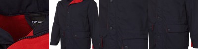 Shell: Polyester/Cotton canvas shell,Lining: 100% Polyester 220gsm anti-pill polar fleece,Zip Closure with draft flap cover for added protection,Two flap-covered front pockets and an internal pocket with zip closure,Embroidery zipper,Draw cord with toggle at waist
