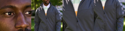 100% polyester, all season soft shell; Wind resistant; Water resistant, DWR finish; Breathable; Thumbhole cuff feature for secure fit ; Auto lock zipper with easy grab puller; Media port; 4-way stretch; Media port; Adjustable three-piece hood designed to contour for a comfortable fit; Zippered chest and hand pockets;