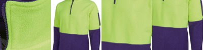 100% Polyester for durability,280gsm low pill polar fleece fabric,Complies with Standards AS/NZS 1906.4:2010 and AS/NZS 4602.1:2011 Day Only,Contrast panel at sleeves and lower front body,Elastic bottom hem with adjustable toggles,Two inseam side pockets and pen pocket at sleeve,Easy care fabric