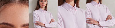 Cotton combined with elastane makes for a super soft, stretchy and comfortable fitted shirt for ladies. Double buttons on the cuff, together with a single button sleeve guard allows for a either a formal arm or a more casual roll back option. Styled with a soft cut-away collar with top button- which again, can be worn formally with a scarf or open collared for a more relaxed look.