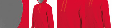 80% ringspun combed cotton/20% polyester. Low shrinkage brushed fleece fabric. Silicone wash. Drop shoulder style. Contrast inner hood and neck tape - heather grey on all colours except oxford grey is mid grey. Self colour drawcord. Front pouch pocket. Ribbed cuffs and hem.