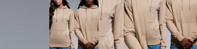 80% organic cotton/20% recycled polyester.* Soft cotton faced fabric. Brushed back fleece. Drop shoulder style. Double fabric hood with self colour drawcord. Nickel free eyelets and drawcord tips. Front pouch pocket. 1x1 ribbed cuffs and hem. Twin needle stitching. Unbranded size label at neckline.