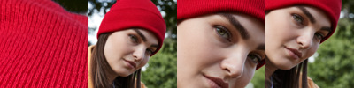 100% organic cotton. Double layer knit. Dual style - cuffed or slouch. Ribbed cuff. Self colour pom pom. Tear out label.