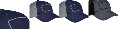 100% cotton twill front panels and bill; 100% polyester mesh back panels; 3¾"W x 2"H cotton twill patch for embellishment; Snapback closure;