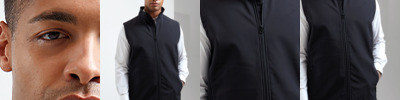 Two layer soft shell. 100% recycled polyester. Bonded fleece inner layer. Easy care fabric. Shower and wind resistant. Slim fit. Full length zip with chin guard. Two front zip pockets. Tear release adjustable cuffs. Elasticated drawcord hem.