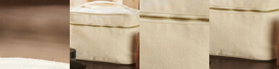 Cotton Carry Handle. Full cotton lining. Zippered closure. Multi-purpose use.